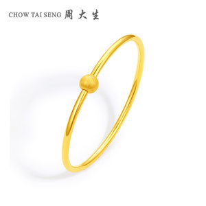周大生黄金手镯女正品新款细光圈金镯子足金转运珠时尚万花筒手镯