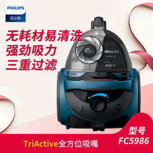 飞利浦吸尘器家用强力大功率卧式低噪音无尘袋耗材FC5986/81
