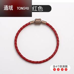 细款皮绳手链不锈钢扣 可穿周大福等黄金转运珠编织牛皮红绳手绳
