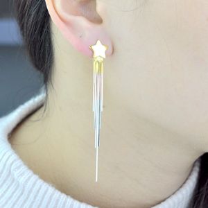 周大福焕美925纯银镀彩金 彩银耳环韩国气质长款夸张流苏