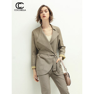 COCOBELLA威尔士格翻领西装女附腰带复古风休闲西服外套CT954