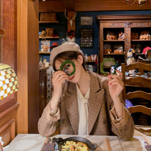JUNISSA 威尔士亲王 50羊毛 高阶呢料复古格子千鸟格小西装外套女