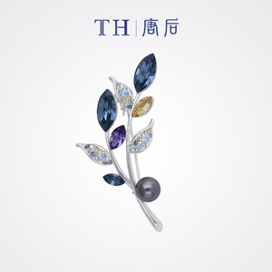 唐后叶子胸花采用施华洛世奇元素水晶胸针女衬衫领针外套别针礼物