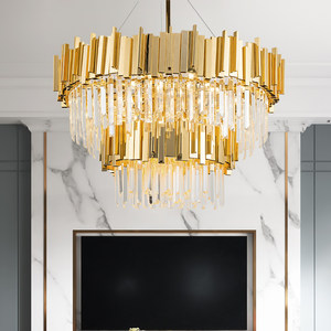 米卡蒂诺客厅吊灯后现代简约金属餐厅灯圆形设计师双层别墅水晶灯