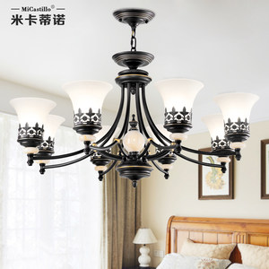 米卡蒂诺美式乡村铁艺客厅吊灯餐厅灯大气复古田园地中海玉石吊灯