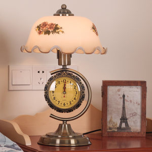 罗莎老上海复古台灯卧室床头灯古典新中式带钟表调光玻璃创意灯具