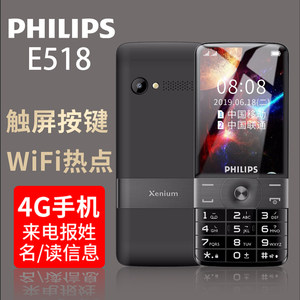 Philips/飞利浦 E518按键全网通4G智能手机直板触屏大屏大字大声商务备用功能老年学生机超长待机老人机