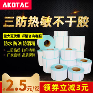 艾科三防热敏标签纸40x30 20 50 60 70 80 100不干胶条码打印机e邮宝超市价格吊牌便利药店奶茶空白定做贴纸