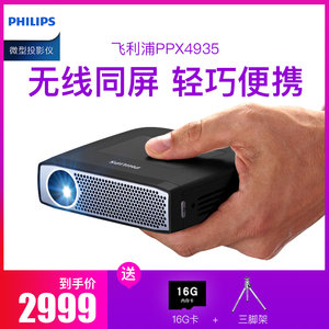 飞利浦PPX4935手机便携投影仪家用高清wifi无线迷你小微型投影机 家庭影院 无屏电视 支持1080P 内置电池
