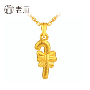 老庙黄金足金吊坠蝴蝶结拐杖糖/1030001495定价3D硬金