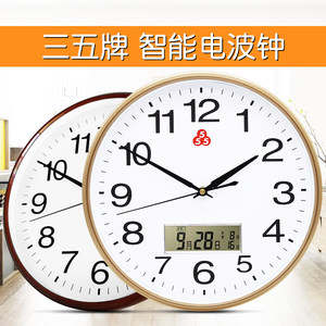 上海三五牌555电波钟自动对时钟表静音客厅挂钟家用三代芯中国码