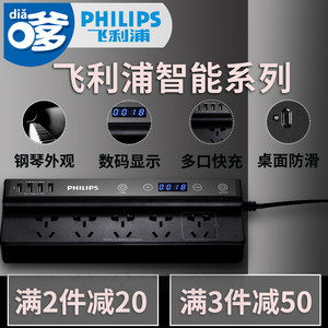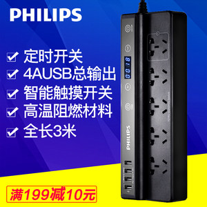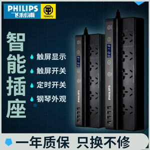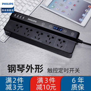 飞利浦USB智能定时插排插座接线板家用多功能排插面板钢琴插线板