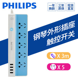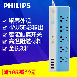 飞利浦5插3米4usb智能排插多孔插座插线板接线板拖线板插排家用