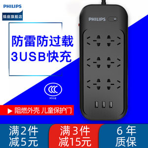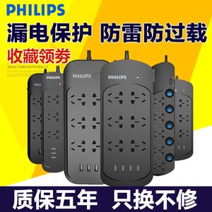 飞利浦智能多功能usb插座转换器防雷插排插线板带线漏电保护器板