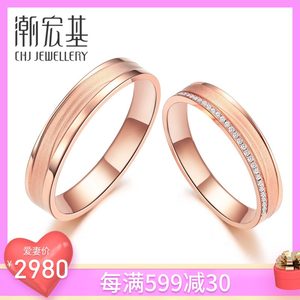 潮宏基 撒哈拉系列-爱意 18K金戒指玫瑰金彩金男女情侣对戒
