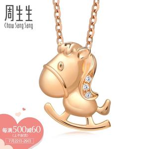 周生生18K红色黄金PetChat摇摇木马钻石吊坠不含项链89805P