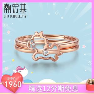 潮宏基 PONY旋转木马红18K金钻石戒指玫瑰金女叠戴戒指可拆 S F