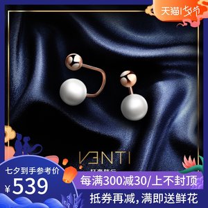 VENTI/梵迪潮宏基旗下 珍晴 彩金耳钉女18K金玫瑰金耳环珍珠
