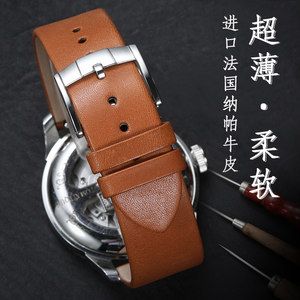 法国牛皮表带男女款超薄真皮表链代用天梭浪琴欧米茄美度DW手表带