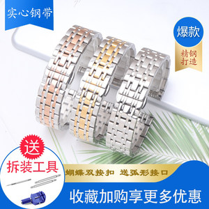 男士精钢表带蝴蝶扣女代用西铁城天梭浪琴欧米茄不锈钢实心钢带20