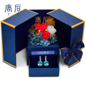 【永生花礼盒】唐后采用施华洛世奇元素水晶耳环女耳钉礼物送长辈