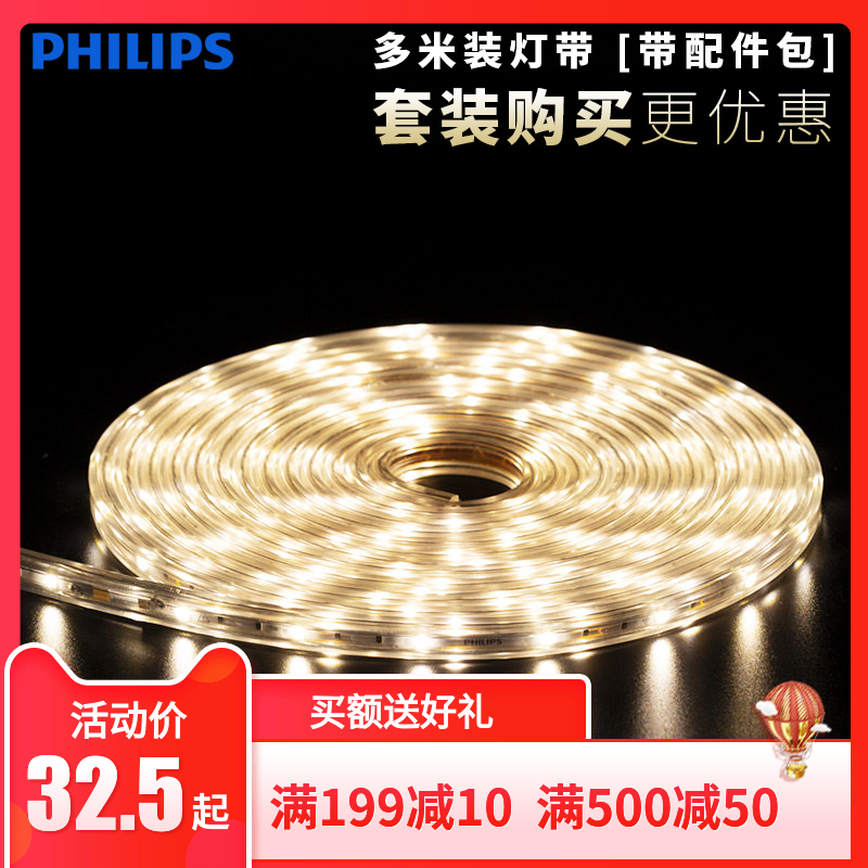 飞利浦灯带led灯条家用客厅吊顶超亮线灯户外防水节能220V软条灯
