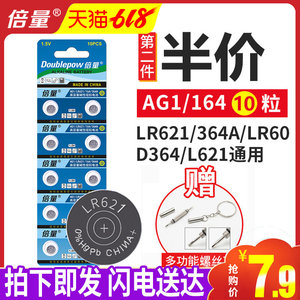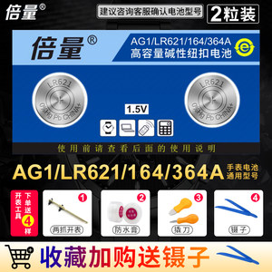 倍量AG1手表电池SR621SW 石英LR621纽扣364A电子164浪琴飞亚达卡西欧天梭CK通用ag1纽扣电池2粒电子包邮