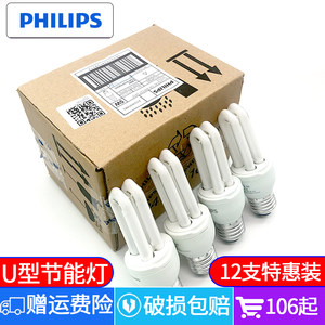 【整盒装】飞利浦U型灯泡E27螺口家用节能大筒灯吊灯光源超亮电灯
