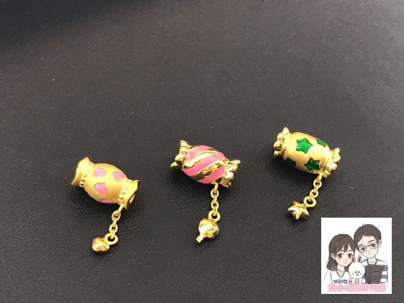 喵喵香港代购六福珠宝999足金黄金彩色珐琅甜密糖果吊坠 手链串珠