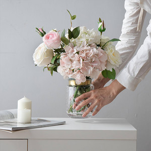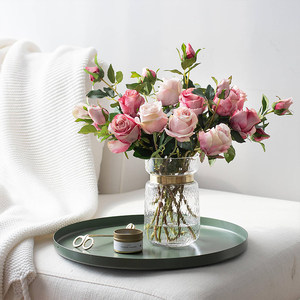 轻奢北欧透玻璃花瓶 客厅鲜花水培插花花器铜环 小宛