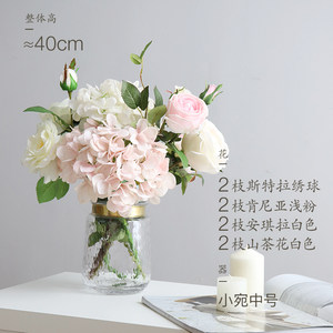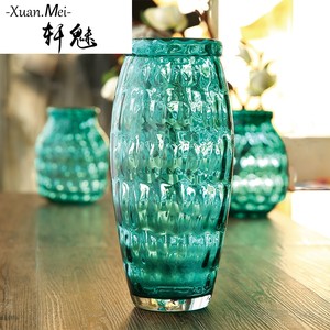 轩魅费洛梵蓝色多瑙河手工圆点玻璃花瓶 北欧家居木棉花艺套装摆