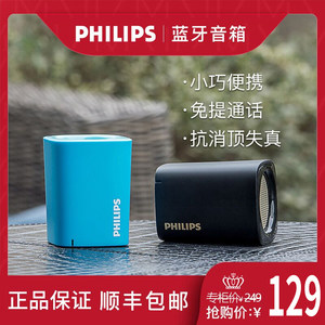 Philips/飞利浦 BT100蓝牙音箱随身无线车载超重低音炮小钢炮可接听电话家用户外便携式小型充电收款音响迷你