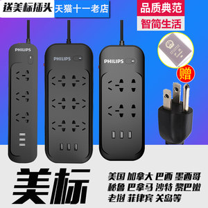 飞利浦USB插排送美标插座插线板转换插头美国加拿大巴西墨西哥