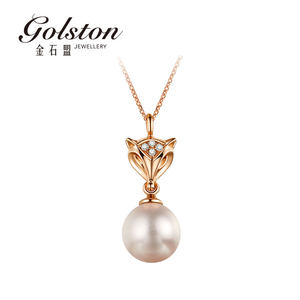 金石盟golston 18K珍珠钻石简约狐狸项链吊坠白狐缪斯系列