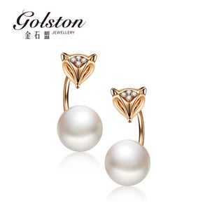 金石盟golston 18K玫瑰金钻石珍珠简约狐狸耳环耳钉 白狐缪斯系列