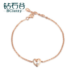 钻石谷 玫瑰18K金心型钻石手链 时尚女款 典雅 定制铂金钻石手链