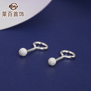 菜百首饰银耳钉 足银球形抛光耳钉 磨砂耳钉 925银小耳钉