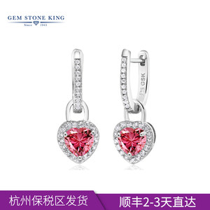 GSK粉色满钻心形耳环925纯银耳坠镶施华洛世奇立方氧化锆石气质女