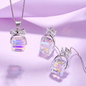 采用施华洛世奇元素水晶925银耳环项链套装气质简约耳坠ins耳饰女
