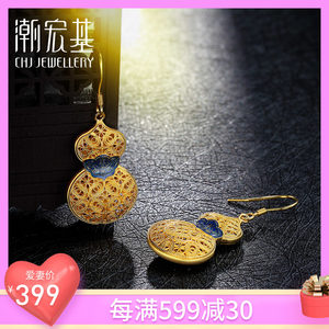潮宏基珠宝 花丝福禄葫芦 银耳钉足银耳环耳坠耳线女