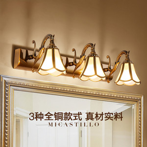 米卡蒂诺 欧式卫生间LED全铜镜前灯浴室厕所镜柜灯具复古铜镜前灯