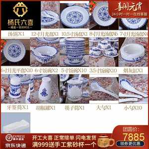 杨氏六喜餐具套装碗碟套装70头骨瓷中式青花玲珑瓷餐具碗碟盘套装
