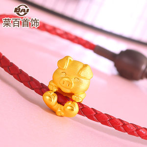 菜百首饰黄金吊坠呆萌生肖抱抱猪转运珠 足金金猪DIY串珠 送皮绳
